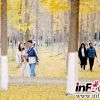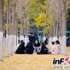 学生和市民在银杏林欣赏秋景<br />