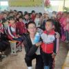 张广义在漳县金钟镇斜坡希望小学与当地学生合影。<br />