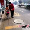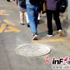 乘车的市民从井盖旁走过&nbsp;金奉乾摄<br />