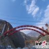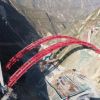 11月10日下午，记者来到武九项目八标尖山沟特大桥施工现场，两边山峰高耸入云，一座主跨达220米的钢管拱桥，如一道彩虹横跨在山谷之间，巍峨壮观。<br />