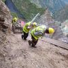 由于山大沟深，尖山沟特大桥施工之初，山上一些基础工程完全靠人力来实施，施工难度极大。（中铁大桥局武九八标项目部供图）<br />