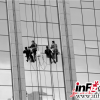 甘州区一处沿街高层楼宇上，高空保洁人员正进行楼面清洗擦拭，助力全域无垃圾整治行动，推进卫生文明城市创建。新甘肃&middot;甘肃日报通讯员&nbsp;杨永伟<br />