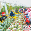 工人正在包装花海蜜瓜。<br />