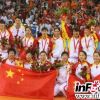 2008年北京残奥会女子坐式排球项目夺冠。图为杨艳玲（前排左二）与队友们合影留念。(资料图）受访人供图<br />