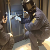 图为：兰州海关所属金城海关工作人员对进口亚麻籽集装箱进行现场验核。张莉/摄<br />