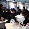 学生在《镜子世界主题展览》现场参观体验&ldquo;穿针引线&rdquo;科普展品<br />