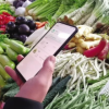 消费者在菜市场扫码查看蔬菜的生产运输过程。<br />