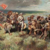 在灰蒙蒙的五龙山岗，衣襟褴褛的红军战士擎起手臂，向着直通通火辣辣的血色长天欢呼胜利。世界战争史上有太多这样的镜头，一些战士就是因此而不朽。<br />