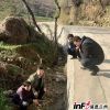 王鹏（左二）和帮扶队员一起查看污水排水渠沟<br />