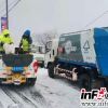 城关区环卫局清运队出动1台除雪车，在伏直公路沿线转弯及上下坡路段铺撒生物融雪剂进行除雪作业，截至目前累计铺撒融雪剂1500余斤。<br />