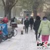 下雪天，兰州市民冒雪出行。金奉乾摄<br />