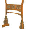 古代衣架其形式多取横杆式，主要用于搭衣服而非挂衣服。两侧有立柱，下有墩子木底座。两柱间有横梁，当中镶中牌子，顶上有长出两柱的横梁，尽端圆雕鸟兽或花草。<br />